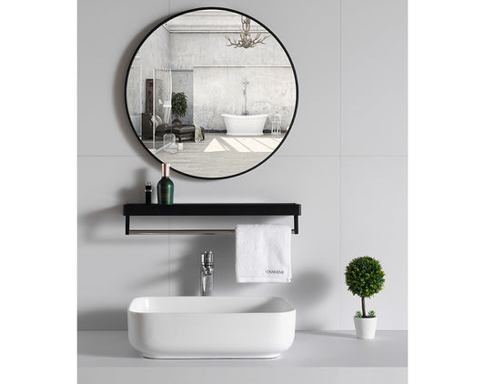 מראה עגולה 50 ס"מ עם מסגרת מתכת שחורה-אקאי