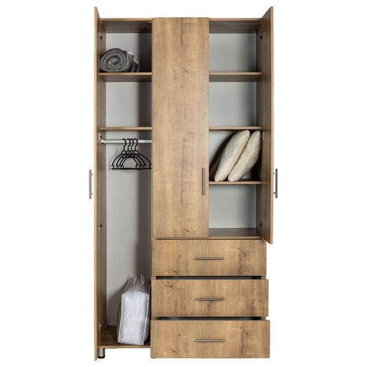 ארון בגדים אלון 3 דלתות + 3 מגירות לבן