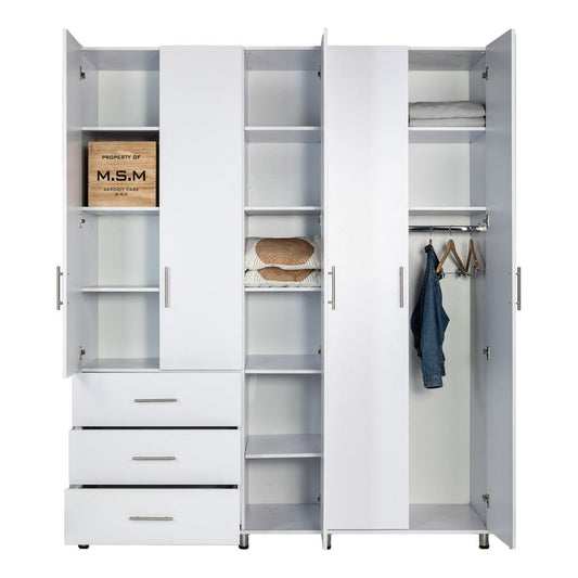 ארון בגדים אלון 6 דלתות + 3 מגירות לבן