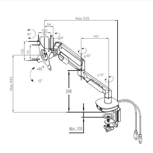 זרוע למסך מחשב 17 עד 32 אינץ עם קפיץ מכני