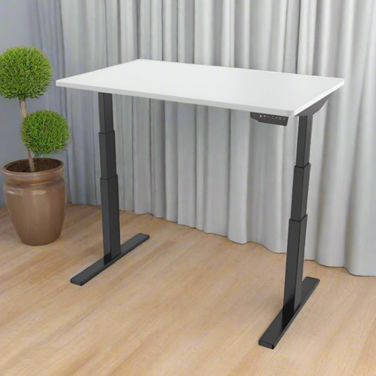 שולחן חשמלי מתכוונן דו מנועי רוחב 120 ס"מ לבן ורגל שחורה דגם HOP מבית Keisar קיסר