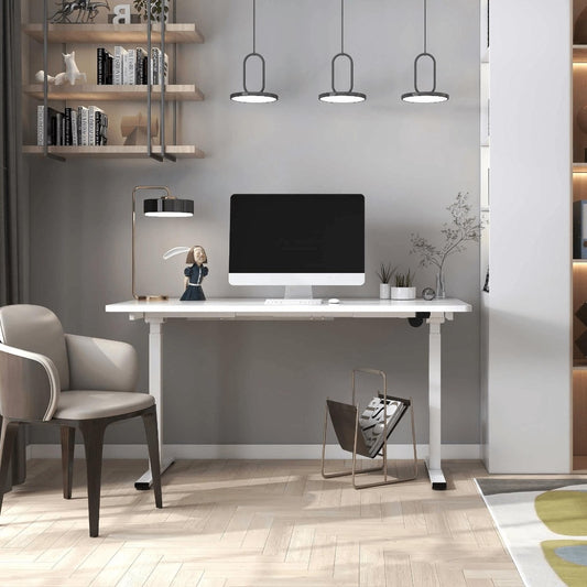 שולחן עבודה חשמלי מתכוונן רוחב 140 ס"מ דגם סיגנל מבית Keisar לבן ורגל שחורה