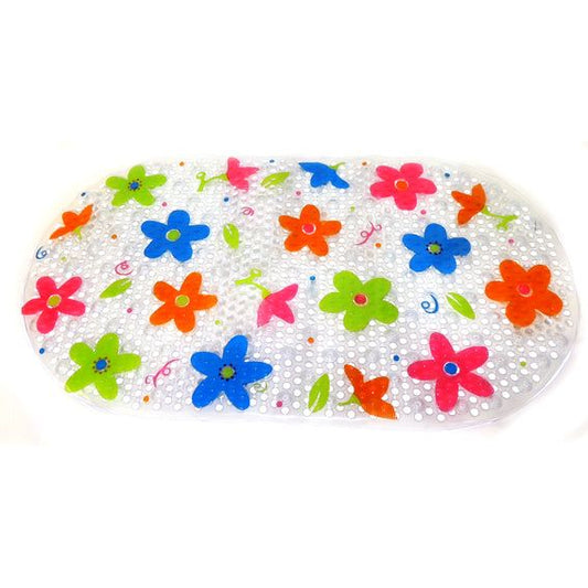 שטיח אמבטיה נגד החלקה פי. וי. סי אובלי שקוף פרחים צבעונים