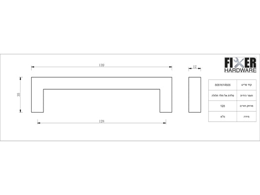 ידית מרובעת לארון ולמגירה, גוון שחור מט.