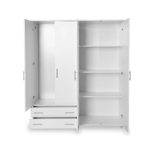 ארון בגדים 4 דלתות+2 מגירות צבע לבן