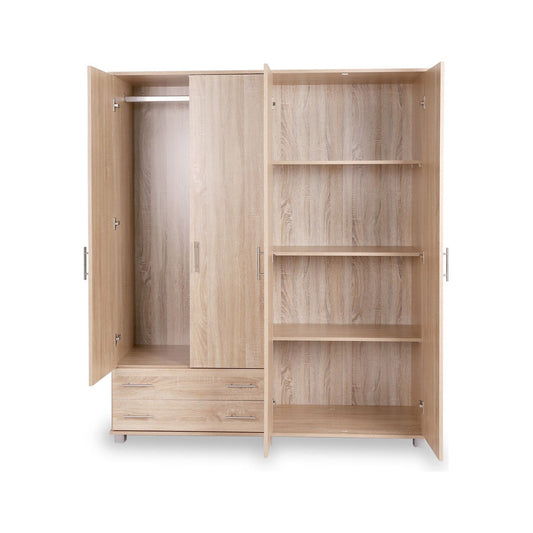 ארון בגדים 4 דלתות+2 מגירות צבע עץ