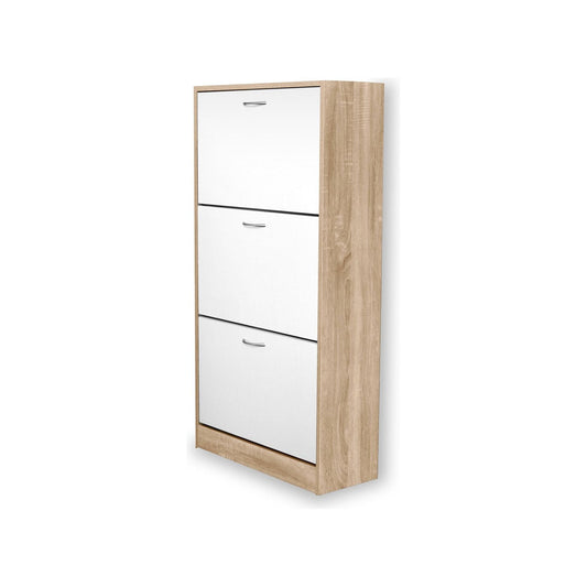 ארון נעליים 3 תאים+אחסון צבע לבן בשילוב עץ