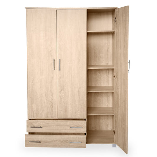 ארון בגדים 3 דלתות+2 מגירות צבע עץ