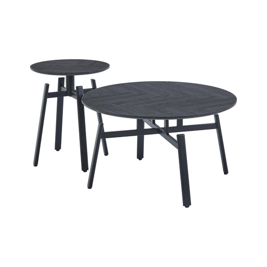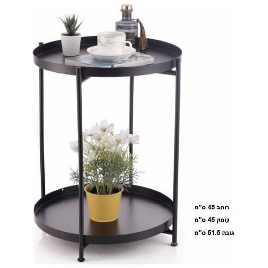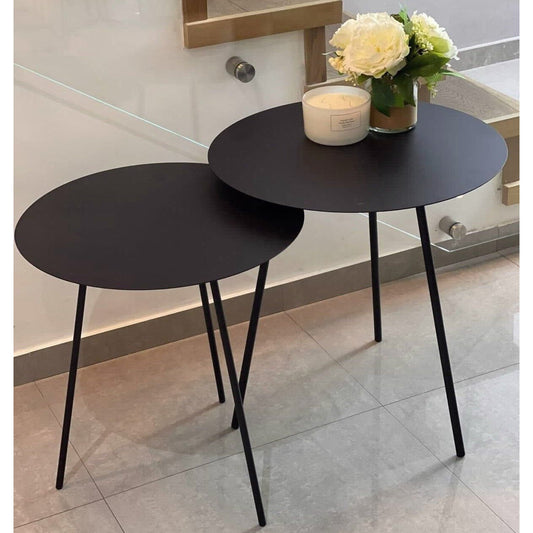 • 2 שולחנות סלון עגולים מיגו שחור קוטר 80+ 45