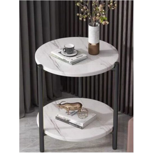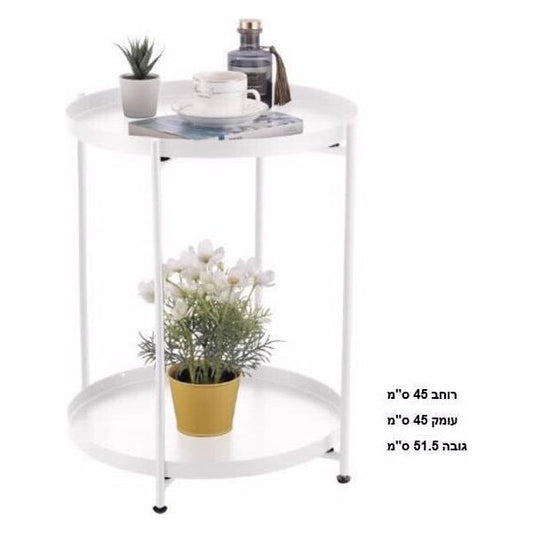 • שולחן צד עגול יופיטר 2 קומות לבן