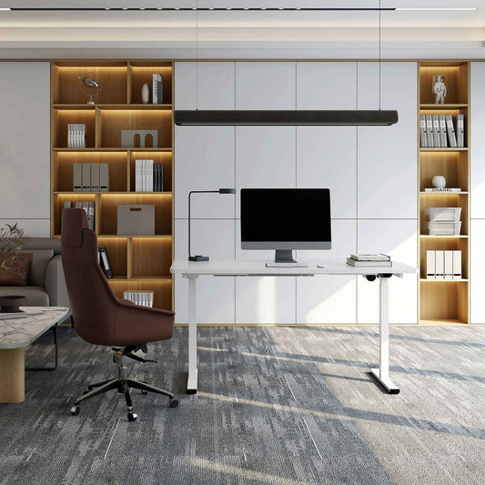שולחן עבודה חשמלי מתכוונן רוחב 140 ס"מ דגם סיגנל מבית Keisar לבן ורגל שחורה