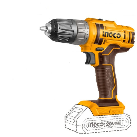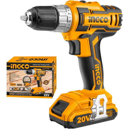 מברגה/מקדחה 20V +שתי סוללות 2A ומטען בתיק בד INGCO