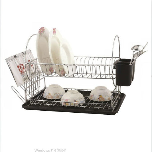מייבש כלים 2 קומות אלומיניום עם סכומון ומגש נשלף DON