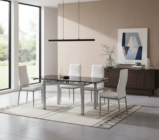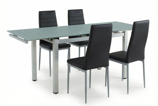 פינת אוכל דגם ונציה - שולחן אוכל אפור ו4 כסאות בשחור
