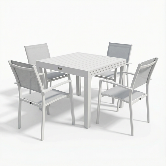 פינת אוכל לגינה שולחן בורגס 90*90 ס"מ + 4 כיסאות פיניקס