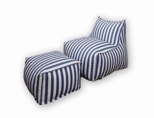 פוף לגינה + הדום , פסים כחול לבן