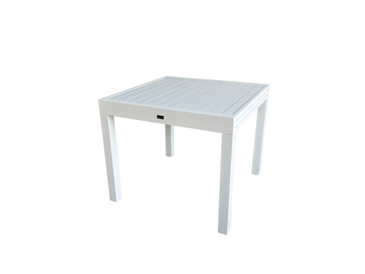 שולחן אלומיניום "אולימפוס" 90*90 ס"מ, נפתח ל 180 ס"מ, לבן