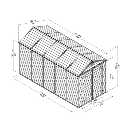 מחסן גינה Rubicon אפור כהה 1.9X3.8 מבית פלרם - Canopia