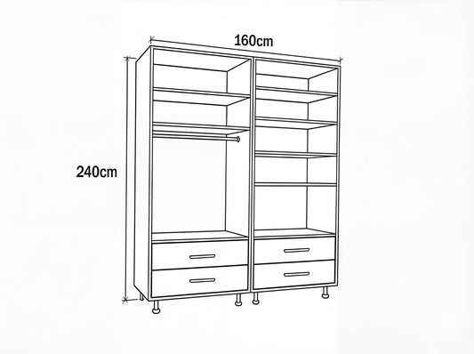 ארון בגדים אלון 2 דלתות + 3 מגירות לבן