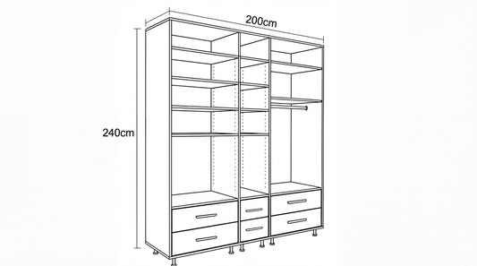 ארון בגדים אלון 6 דלתות + 3 מגירות לבן