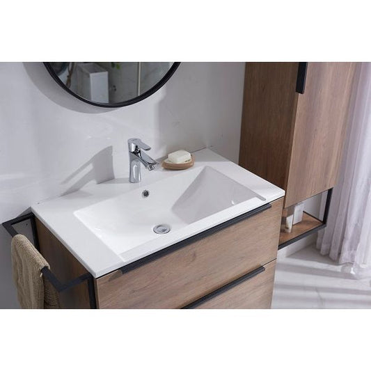 ארון אמבטיה קאסטליון 100 ס"מ בצבע עץ עם כיור בצבע לבן + חור לברז
