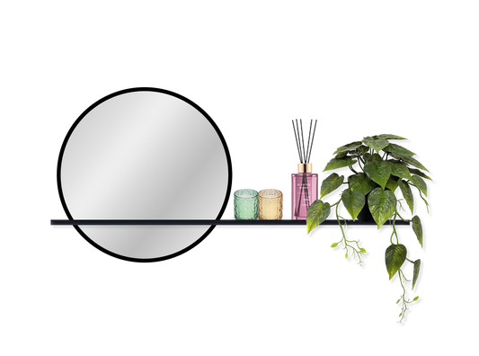 מראה שחורה עגולה 60 סמ עם רצועת עור לתליה