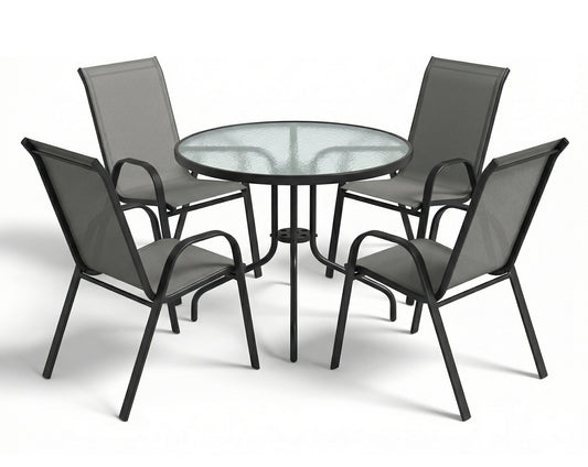 פינת אוכל שולחן "ניו יורק" 90 ס"מ שחור + 4 כסאות "ואלרי אפור