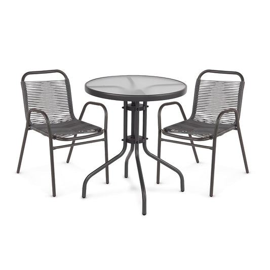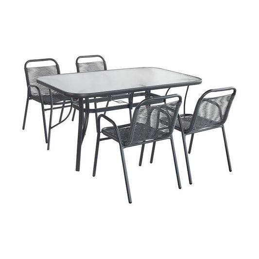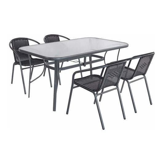 סט שולחן מלבני אפור כהה 90*150 ס"מ ניו יורק + 4 כסאות ראטן פלורידה שחור