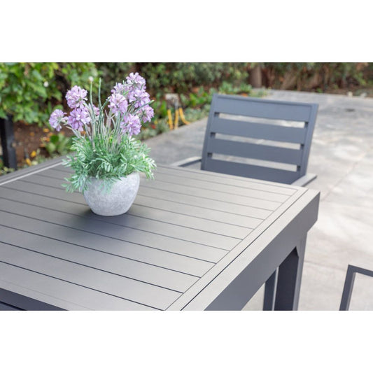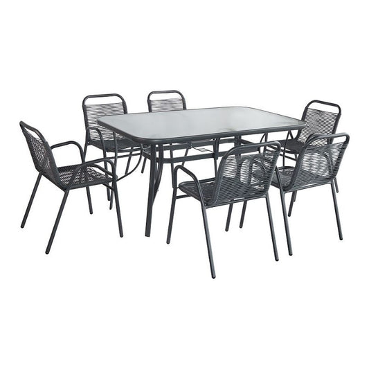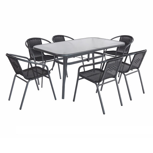 סט שולחן מלבני אפור כהה 90*150 ס"מ ניו יורק + 6 כסאות ראטן פלורידה שחור