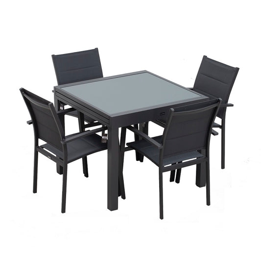 פינת אוכל לגינה שולחן בורגס 90*90 ס"מ + 4 כיסאות פיניקס