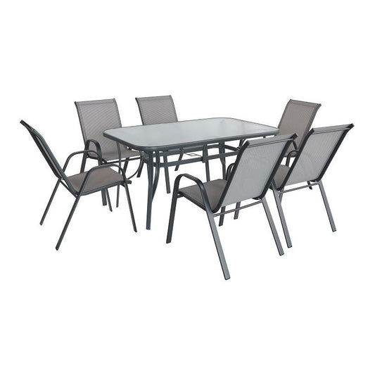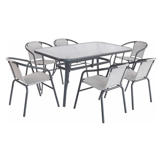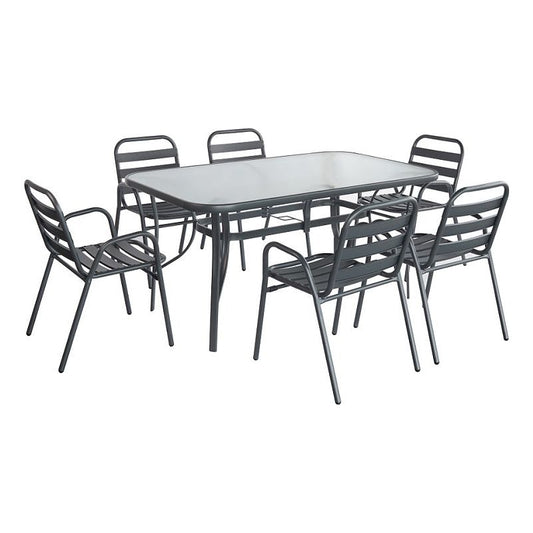 סט שולחן מלבני אפור כהה 90*150 ס"מ ניו יורק + 6 כסאות הוואנה אפור