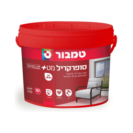 צבע סופרקריל מט+ לבן 18 ליטר טמבור