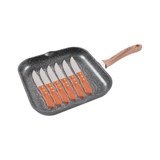 מחבת גריל 28*28 + 6 סכיני סטייק