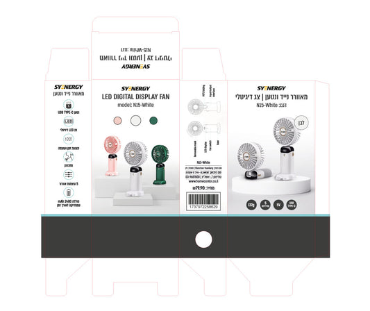 מאוורר נישא ונייד לבן נטען USB דגם N15 של SYENERGY