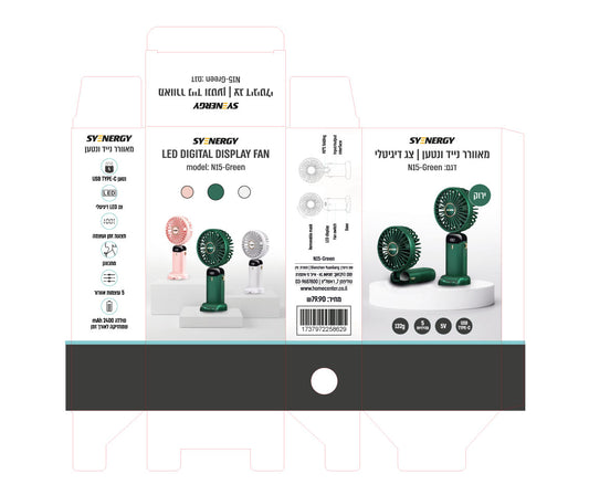 מאוורר נישא ונייד ירוק נטען USB דגם N15 של SYENERGY