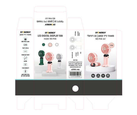 מאוורר נישא ונייד ורוד נטען USB דגם N15 של SYENERGY