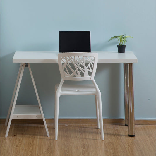 רגל חמור מתקפלת לשולחן, כולל מדף, לבן