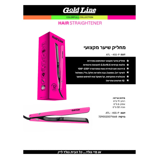 מחליק שיער קרמי דיגיטלי ורוד 62W דגם ATL-455-P של גולדליין