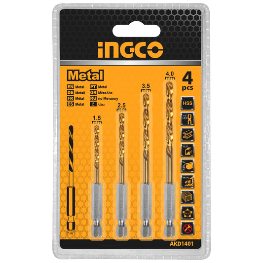 סט 4 מקדחי טיטניום למברגה