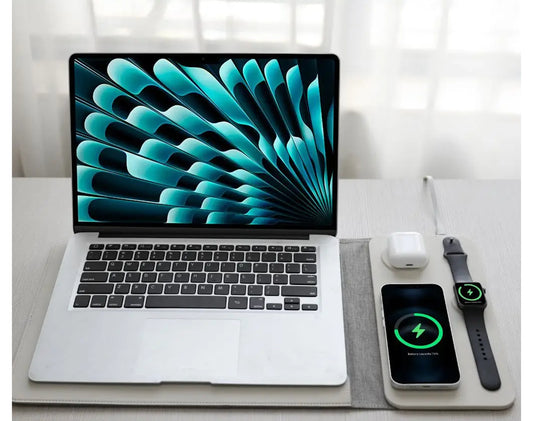 נרתיק לפטופ 5 ב-1 מעור – סט מולטיפונקציונלי עם מטען אלחוטי ואחסון