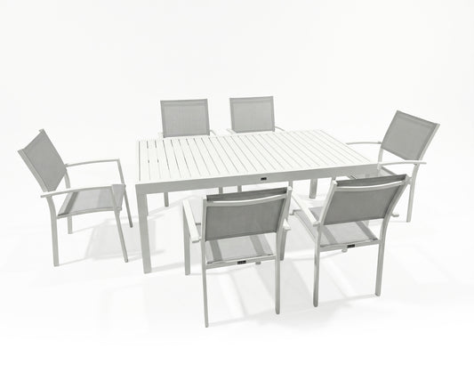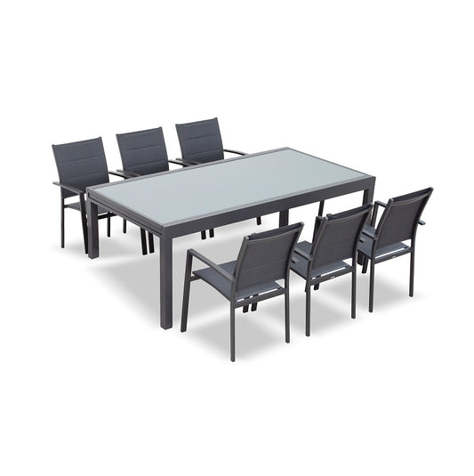 פינת אוכל לגינה שולחן 105*200 320 + 6 כסאות פיניקס מרופדים אלומיניום אפור כהה