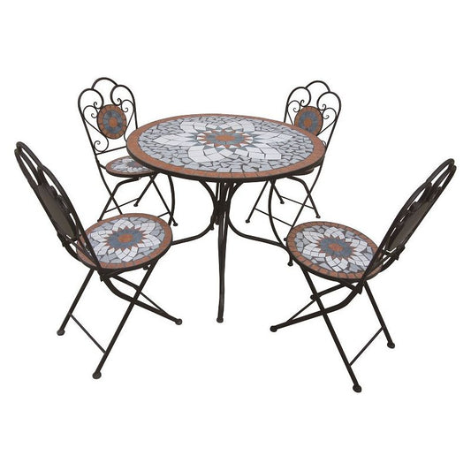 פינת ישיבה פסיפס כתום שולחן עגול 90 ס"מ + 4 כסאות