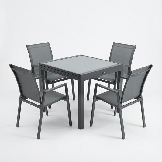פינת אוכל לגינה שולחן בורגס 90*90 ס"מ + 4 כיסאות פיניקס