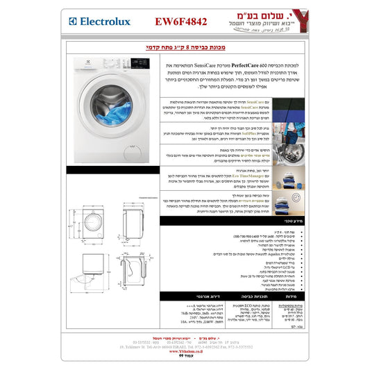 מכונת כביסה אלקטרולוקס 8 קג פתח קדמי לבן דגם EW6F4842 של Electrolux
