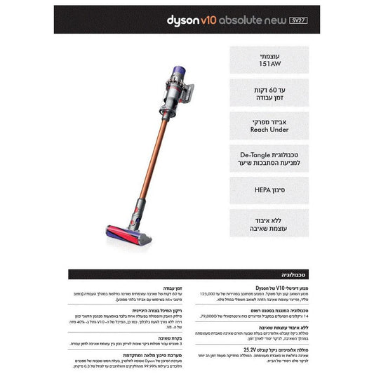 • שואב אלחוטי דייסון V10 Absolute New