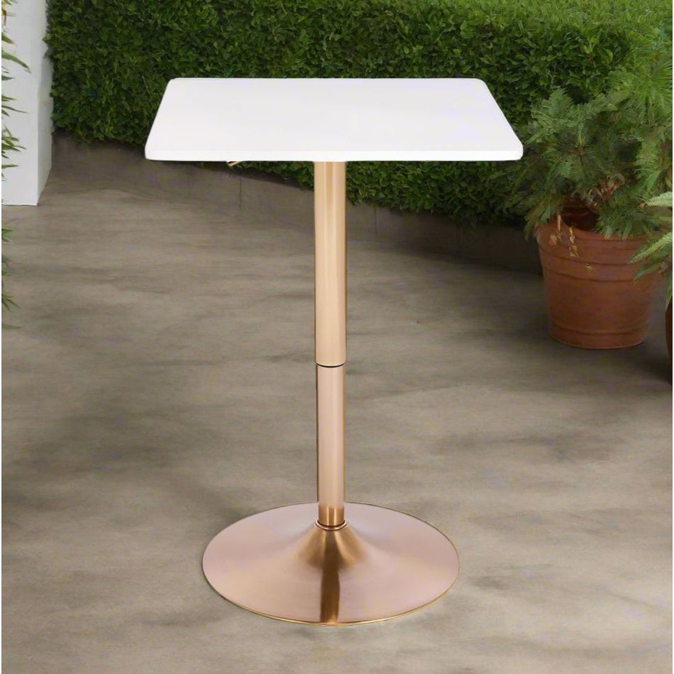 שולחן בר מרובע לבן 60*60 רגל עגולה זהב