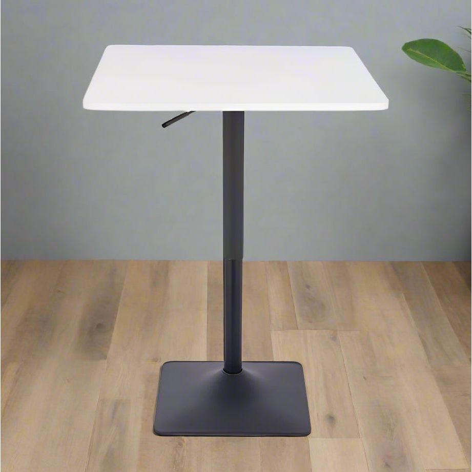 ניתן לכוון את גובה השולחן בטווח של 68-88 ס"מ. שולחן בר מרובע לבן 70*70 רגל מרובעת שחור