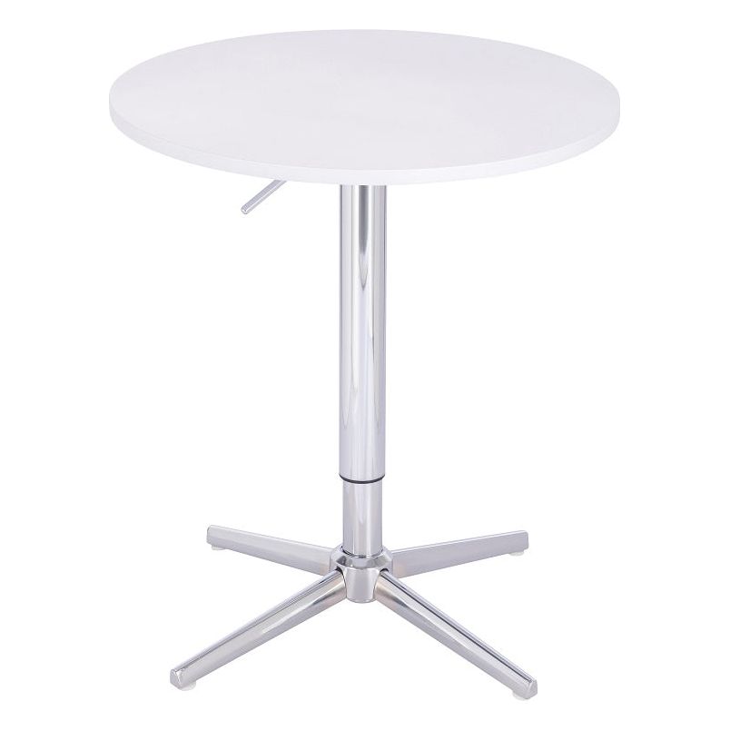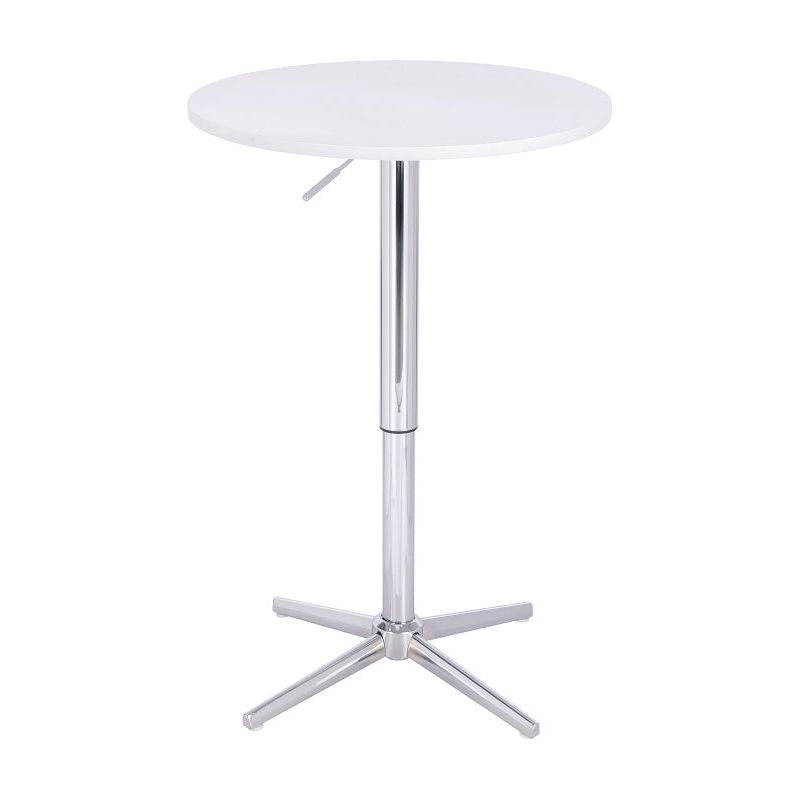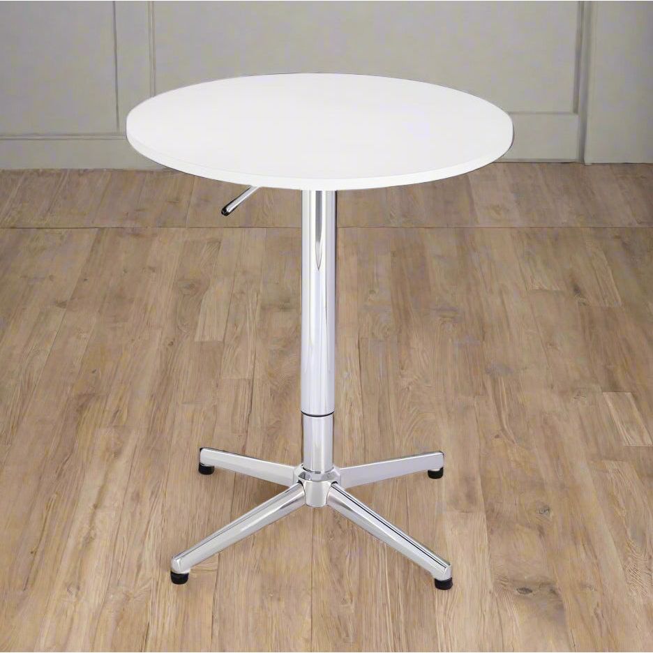 ניתן לכוון את גובה השולחן בטווח של 68-88 ס"מ. שולחן בר עגול לבן 60 ס"מ רגל כוכב כרום