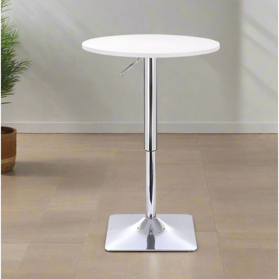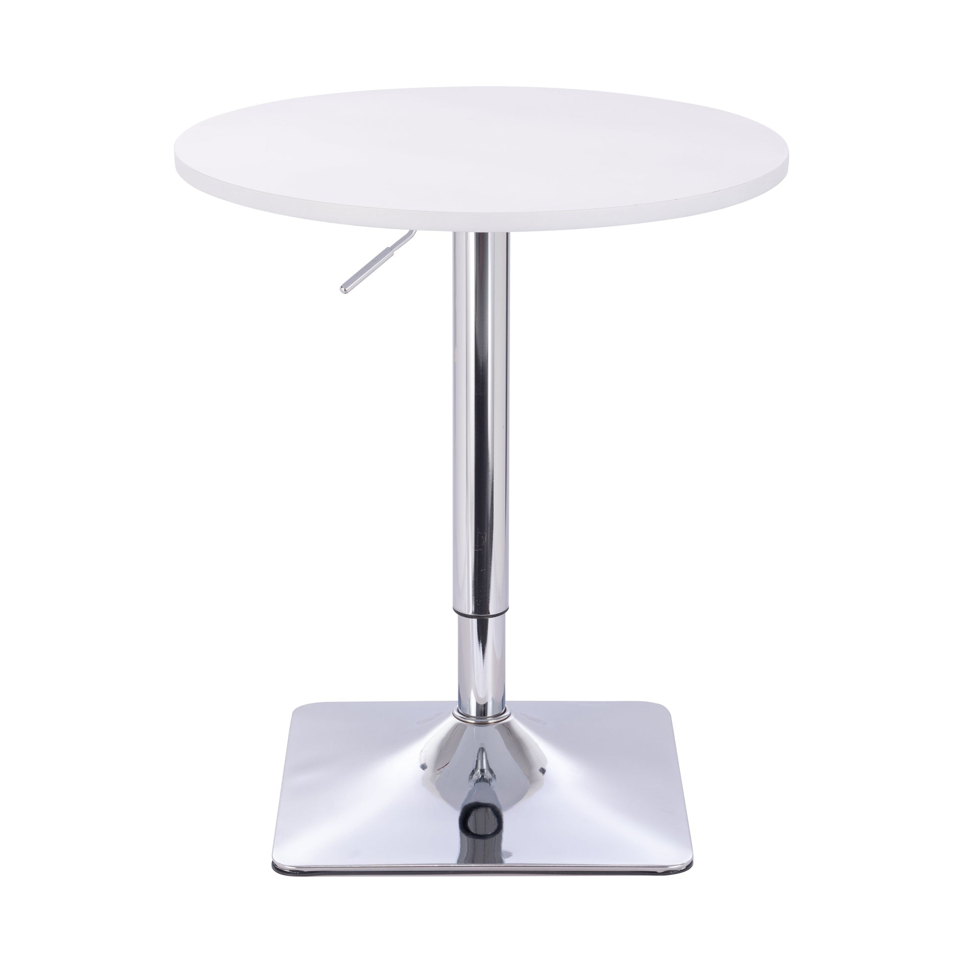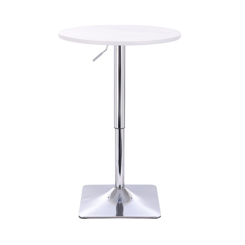 ניתן לכוון את גובה השולחן בטווח של 68-88 ס"מ. שולחן בר עגול לבן 60 ס"מ רגל מרובעת כרום