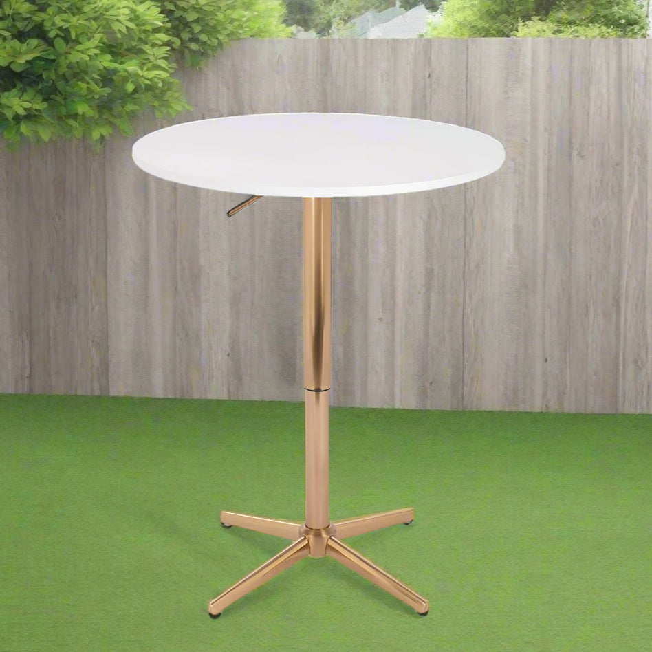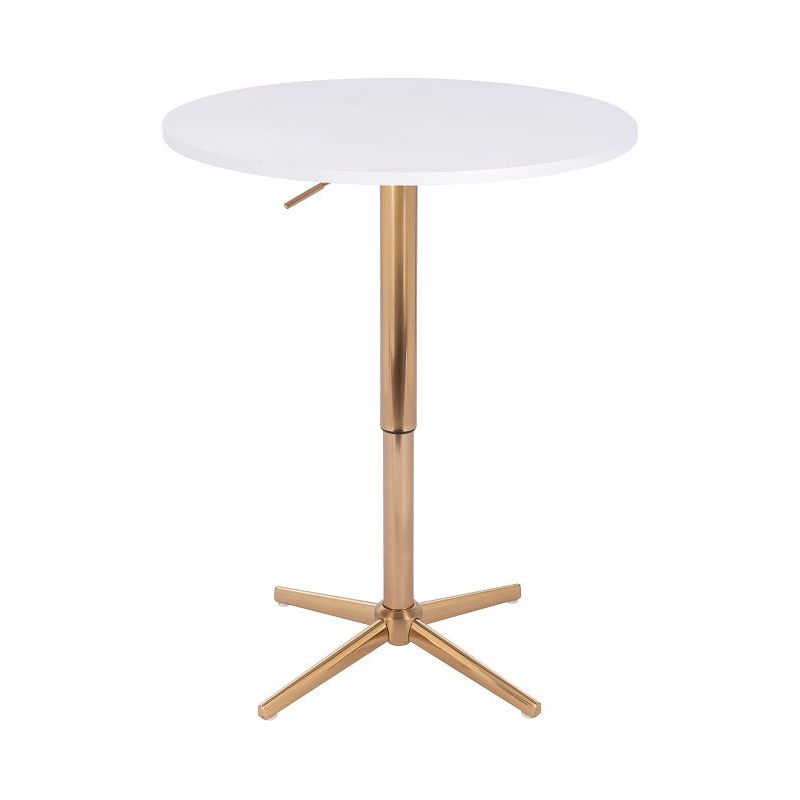 ניתן לכוון את גובה השולחן בטווח של 68-88 ס"מ. שולחן בר עגול לבן 70 ס"מ רגל כוכב זהב